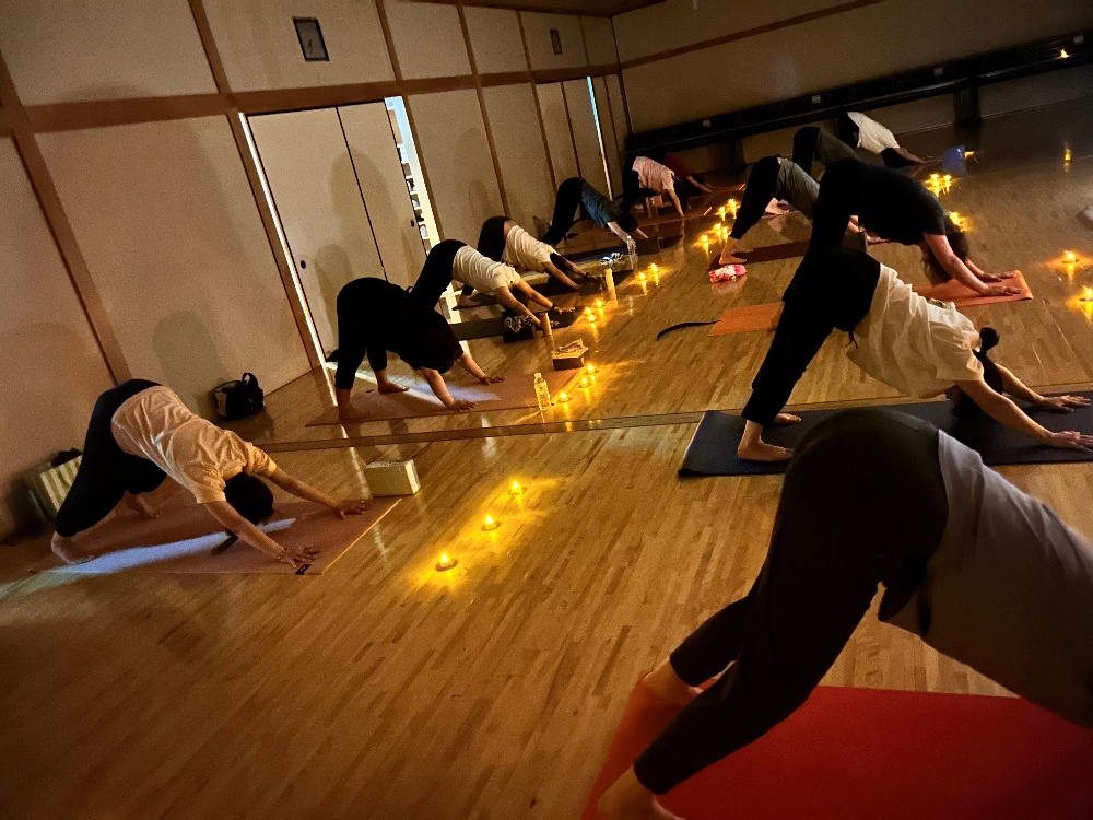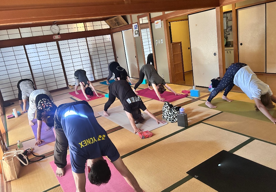 ◇9割り初心者スタート、クラスは基本的にベーシックポーズを中心にして、レベル別にアレンジしながら、各自のペースで心地よく動けることを目指して練習中します