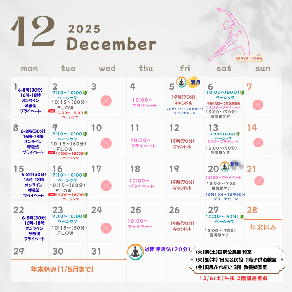 ◇9割り初心者スタート、クラスは基本的にベーシックポーズを中心にして、レベル別にアレンジしながら、各自のペースで心地よく動けることを目指して練習します